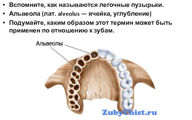 Вспомните, как называются легочные пузырьки.Альвеола (лат. alveolus — ячейка, углубление)Подумайте, каким образом этот термин может быть применен по отношению к
