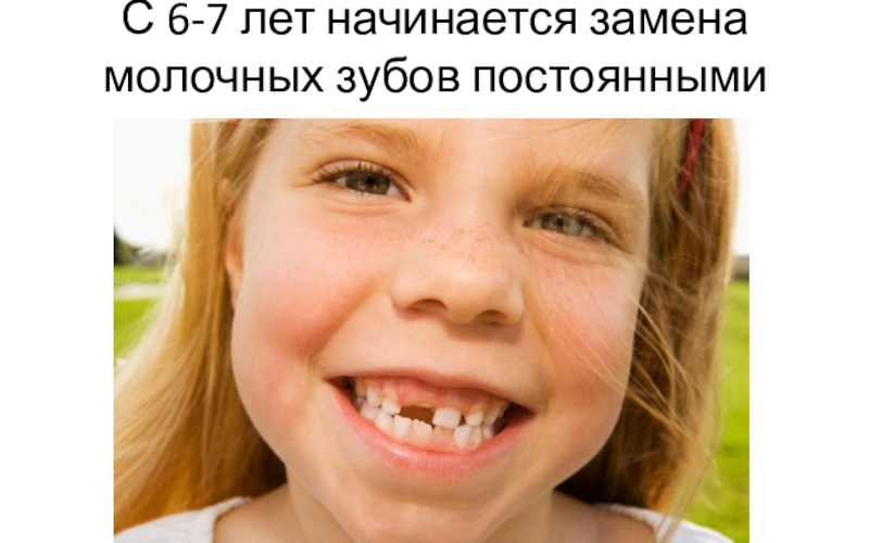 Слайд 6С 6-7 лет начинается замена молочных зубов постоянными