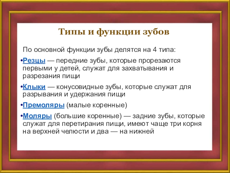 Слайд 11Типы и функции зубов