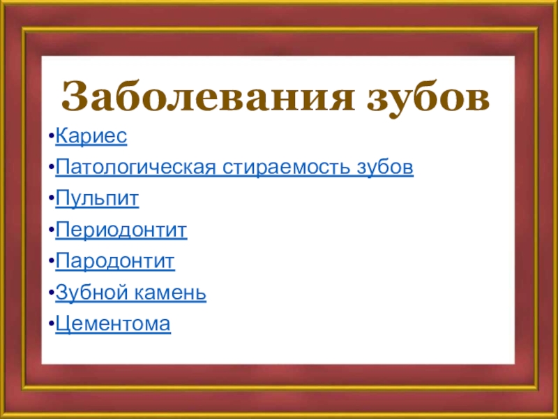 Слайд 22Заболевания зубов