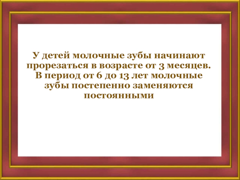 Слайд 10У детей молочные зубы начинают прорезаться в возрасте от 3 месяцев.