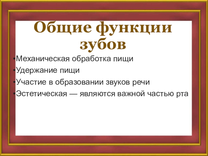 Слайд 21Общие функции зубов