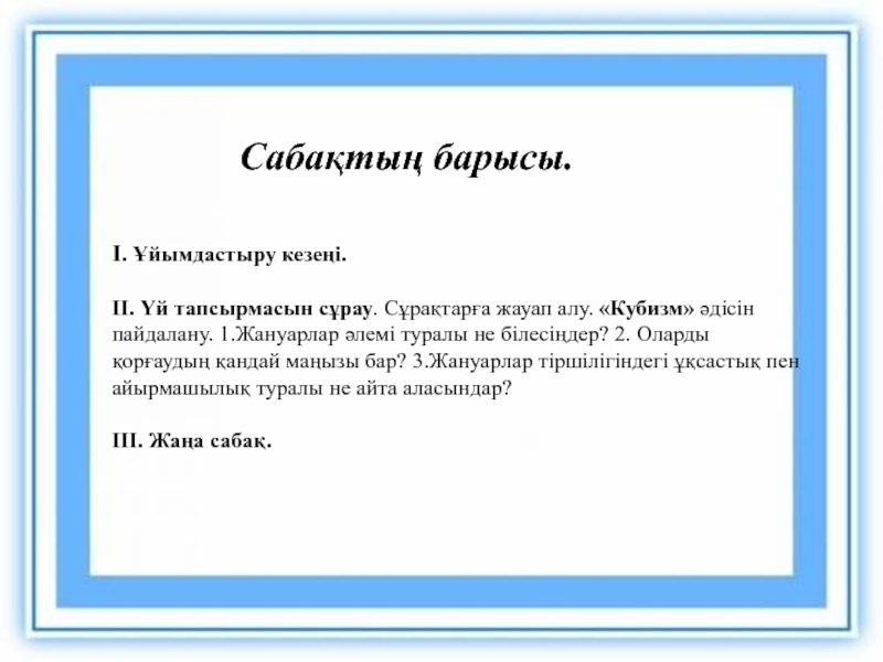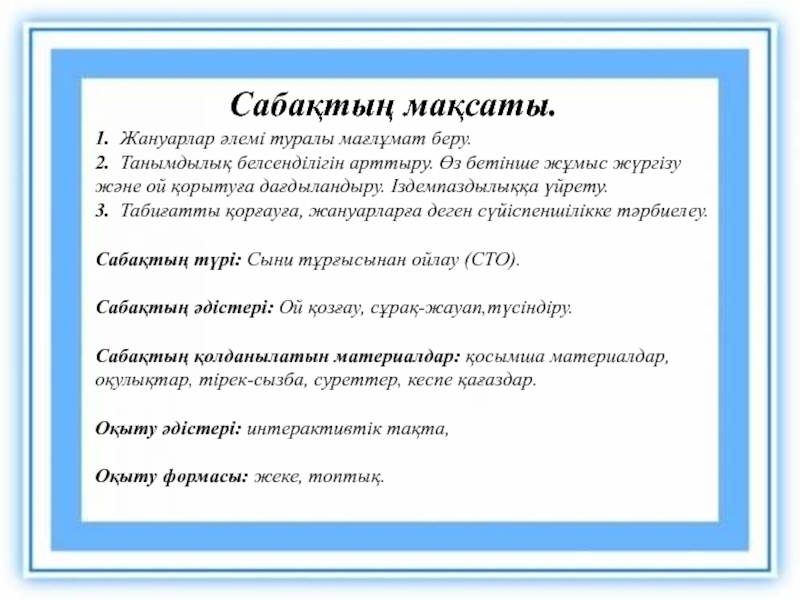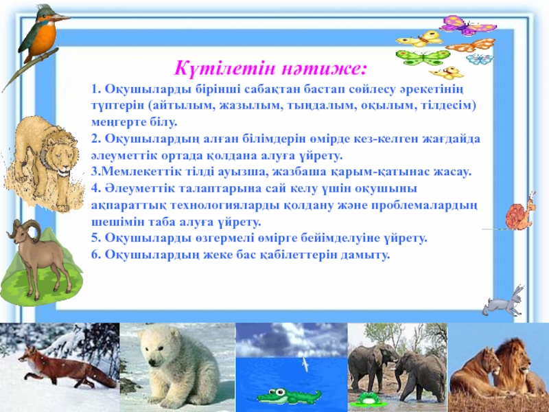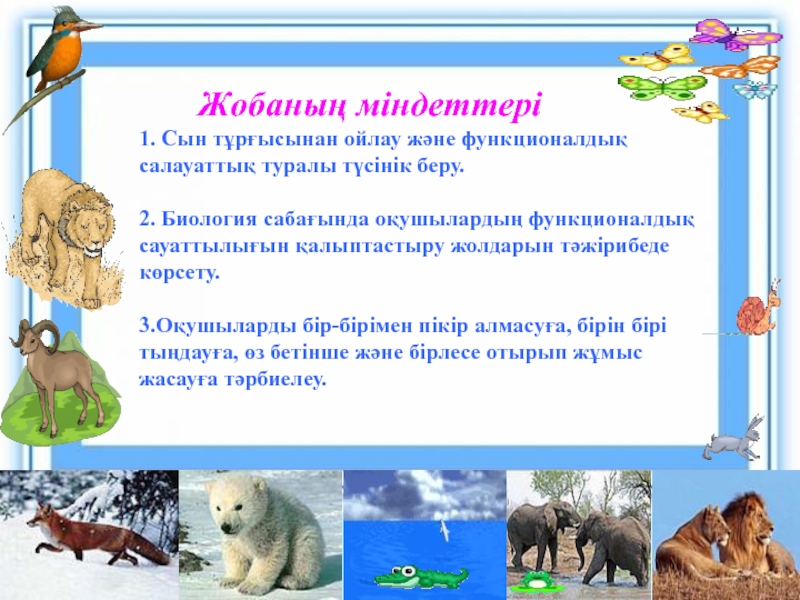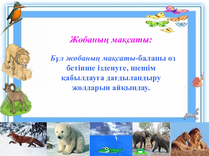 Жоба жұмысының тақырыбы: «Жануарлар әлемі».
