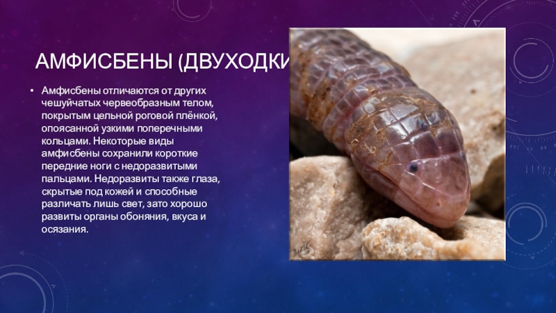 Слайд 9Амфисбены ведут роющий образ жизни. Они почти всё время находятся под