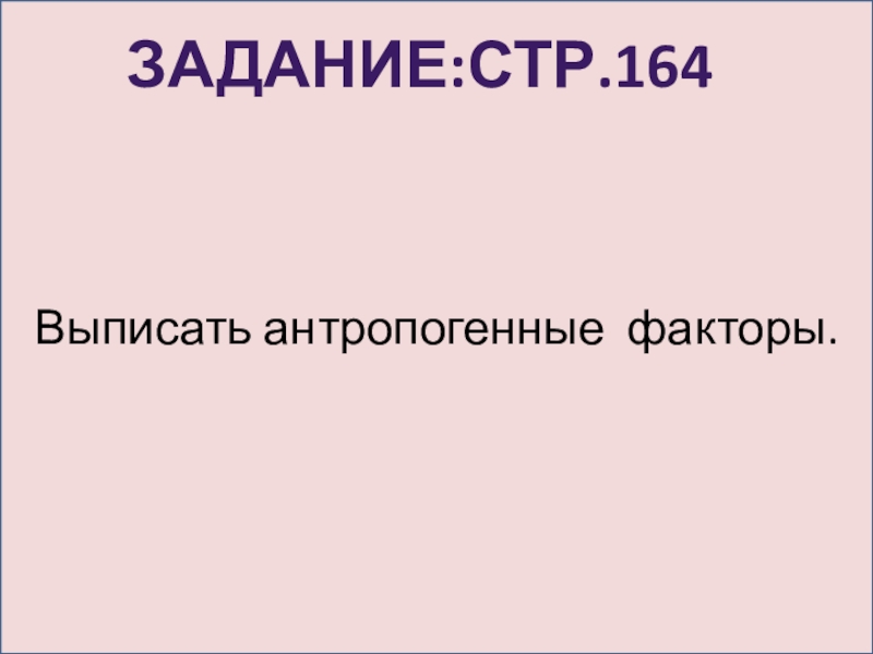 Выписать антропогенные факторы.Задание:Стр.164