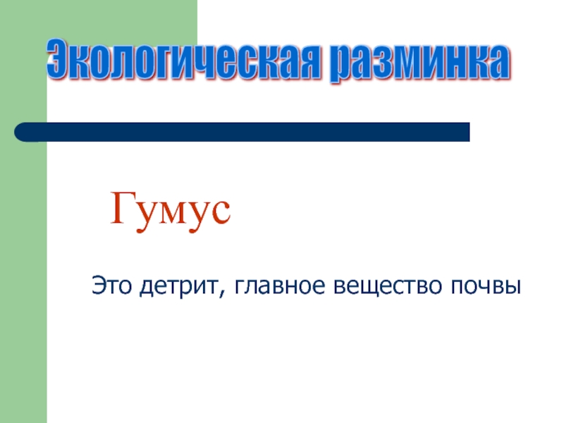 Экологическая разминкаГумусЭто детрит, главное вещество почвы