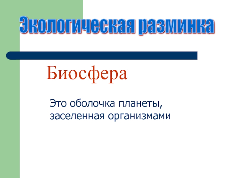 БиосфераЭкологическая разминкаЭто оболочка планеты, заселенная организмами