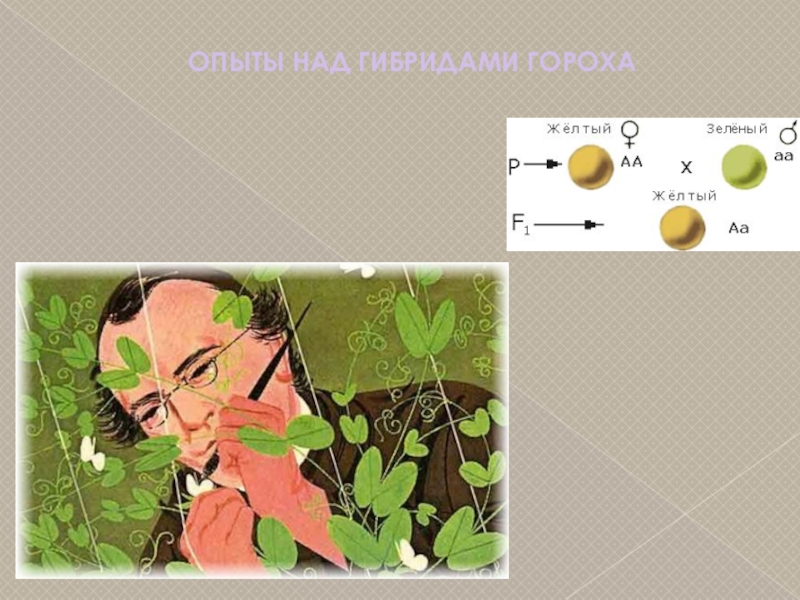 Слайд 4ОПЫТЫ НАД ГИБРИДАМИ ГОРОХА