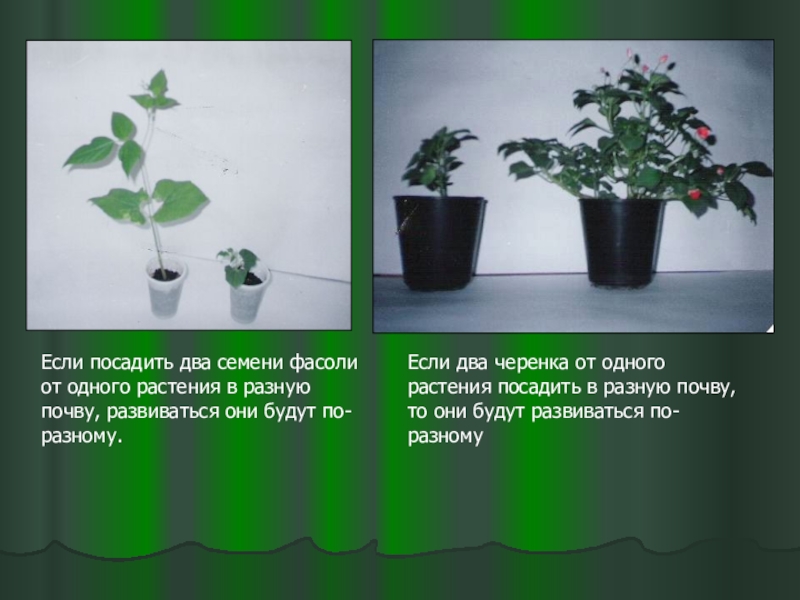 Если два черенка от одного растения посадить в разную почву, то они будут развиваться по-разному