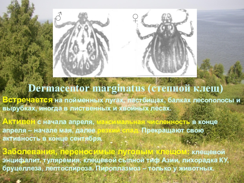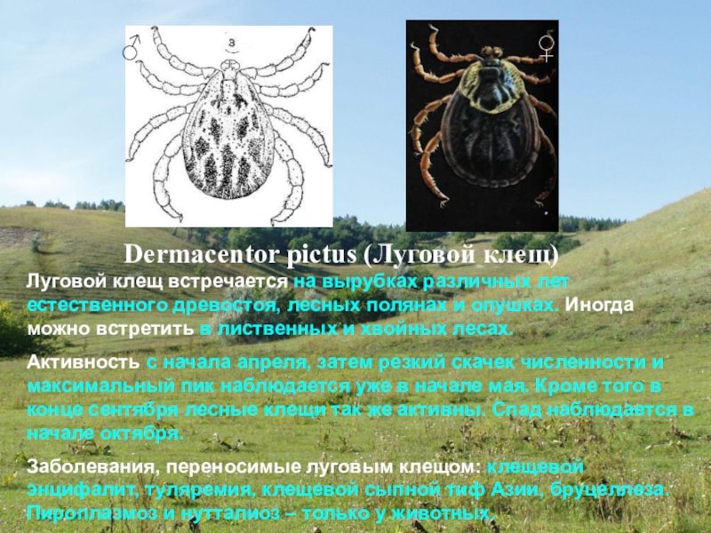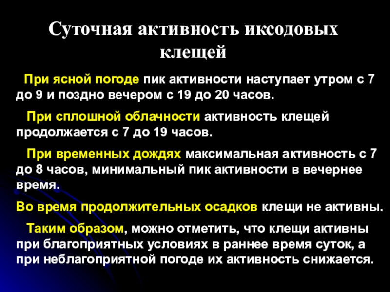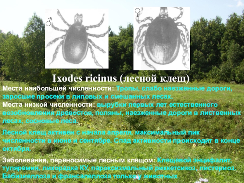 Клещи начинают свою активность в середине апреля, пик численности наступает в июне и до конца августа.