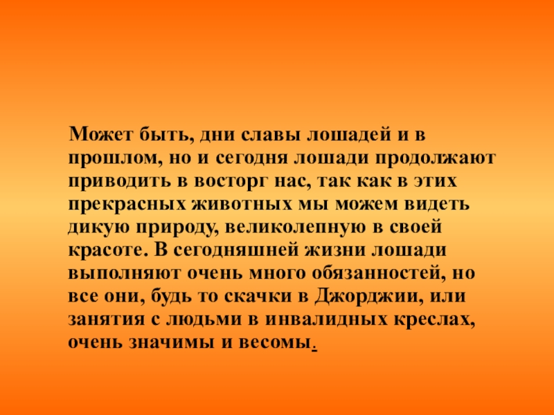 Слайд 25 Может быть, дни славы лошадей и в прошлом, но