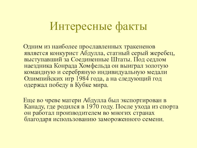 Одним из наиболее прославленных тракененов является конкурист Абдулла,