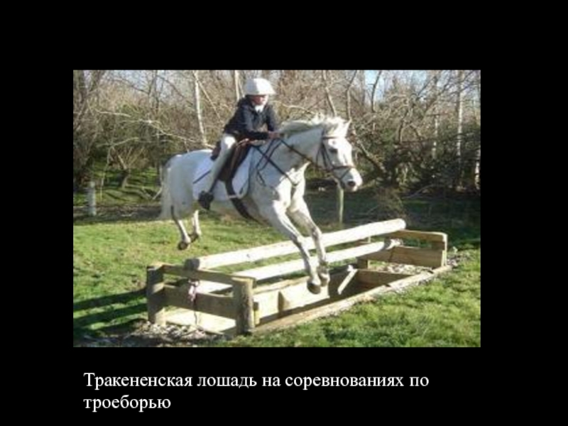 Слайд 20Тракененская лошадь на соревнованиях по троеборью