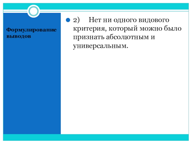 Биологическая концепция вида: виды определяются не различием, а обособленностью, состоят из популяций, главным свойством вида является репродуктивная изоляция.