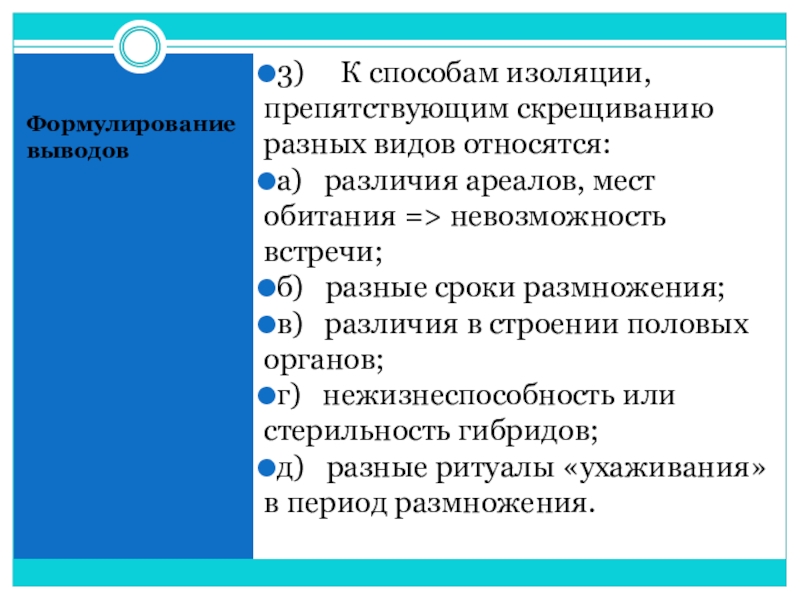 в совокупности обусловливают генетическую изоляцию видов, обеспечивая самостоятельность каждого вида и разнообразие их в природе.