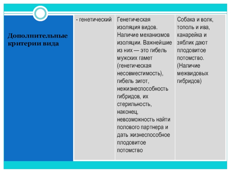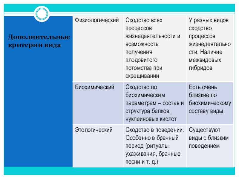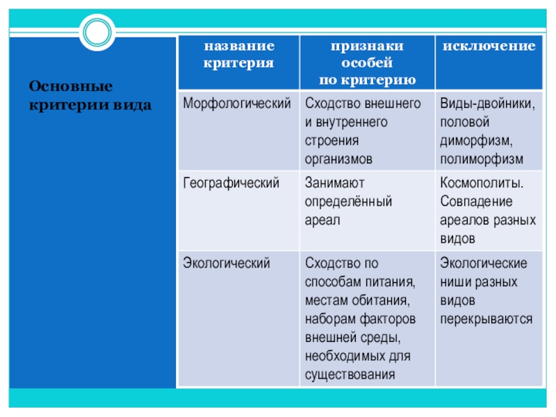 КРИТЕРИИ ВИДА – это признаки, по которым один вид можно