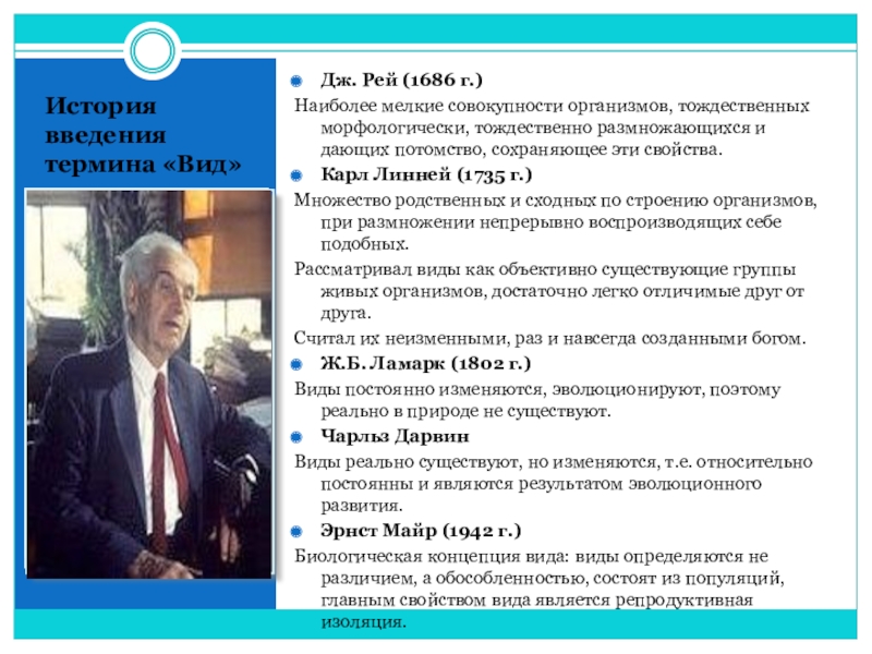 Рассматривал виды как объективно существующие группы живых организмов, достаточно легко отличимые друг от друга.