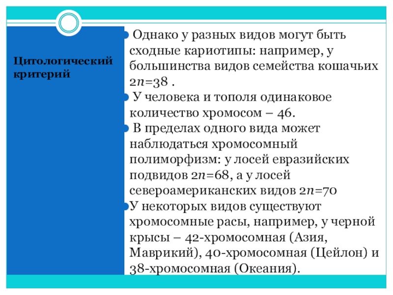 Основан на том, что каждый вид характеризуется определенным кариотипом –