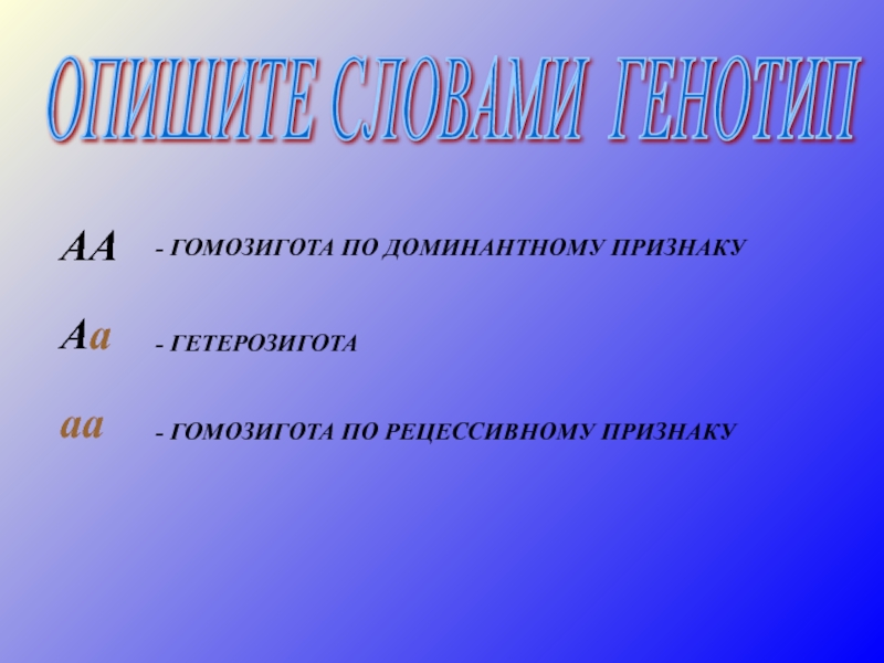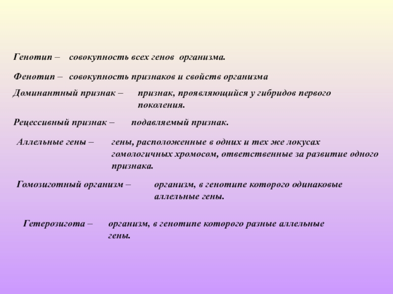 организм, в генотипе которого разные аллельные гены.