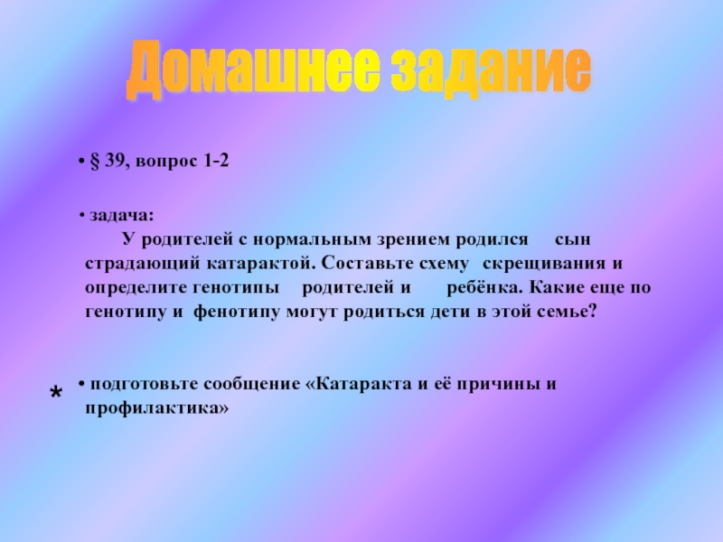 Продолжить развитие навыков работы с генетическими терминами, символами.