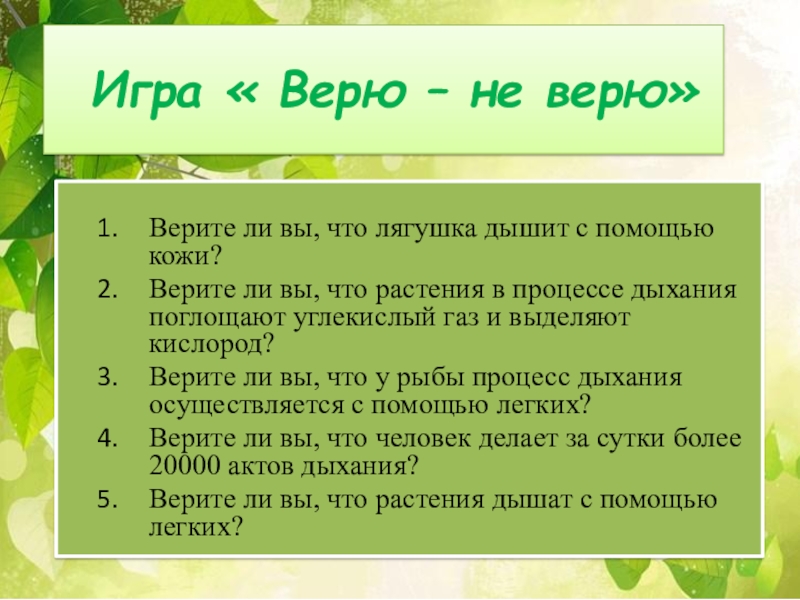 Верите ли вы, что растения в процессе дыхания поглощают углекислый газ и выделяют кислород?