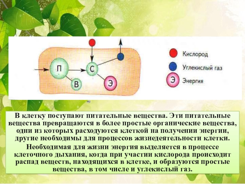 Слайд 8В клетку поступают питательные вещества. Эти питательные вещества превращаются в более
