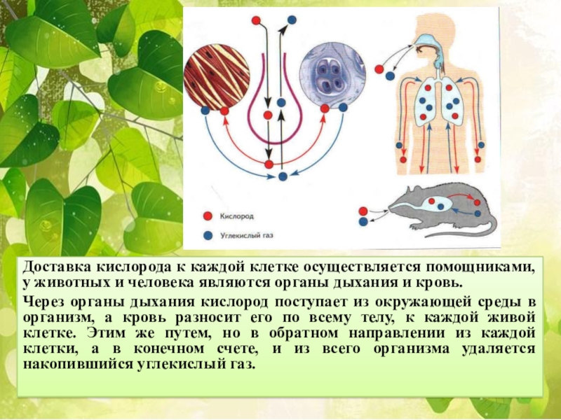Слайд 7Доставка кислорода к каждой клетке осуществляется помощниками, у животных и человека