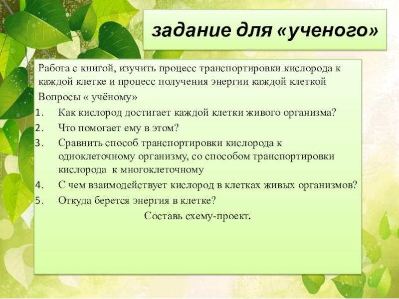 Работа с книгой, изучить процесс транспортировки кислорода к каждой