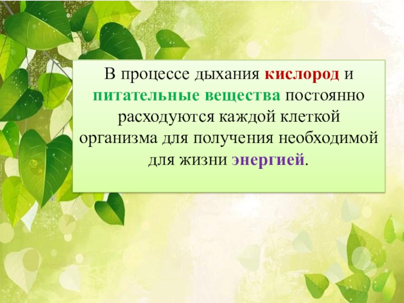 Слайд 18В процессе дыхания кислород и питательные вещества постоянно расходуются каждой клеткой
