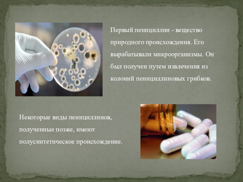 Некоторые виды пенициллинов, полученные позже, имеют полусинтетическое происхождение.