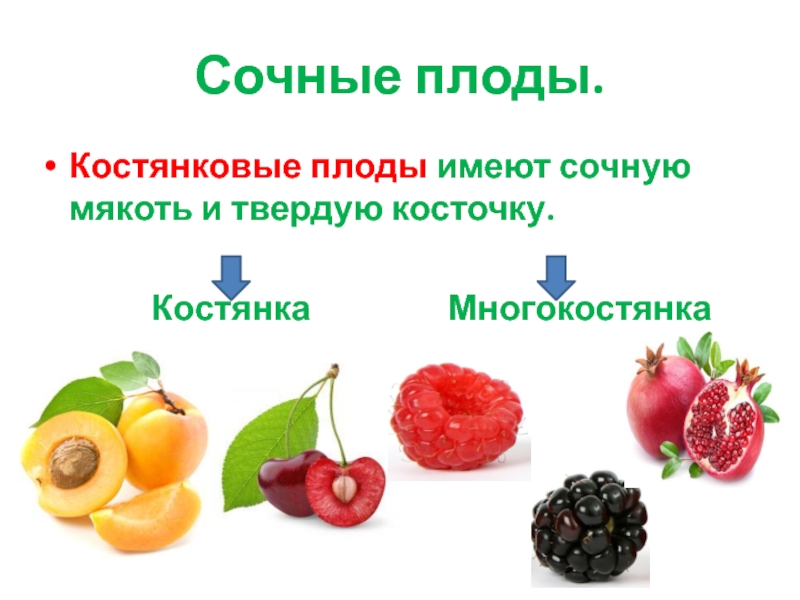 Костянковые плоды имеют сочную мякоть и твердую косточку.