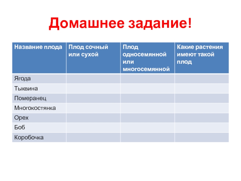 Презентация, доклад по биологии на тему:Плоды (6 класс)