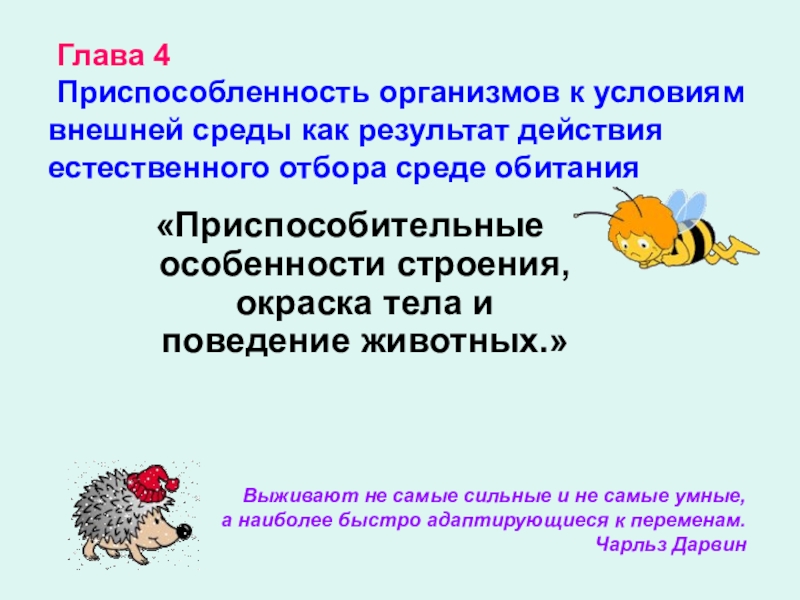«Приспособительные особенности строения, окраска тела и поведение животных.»