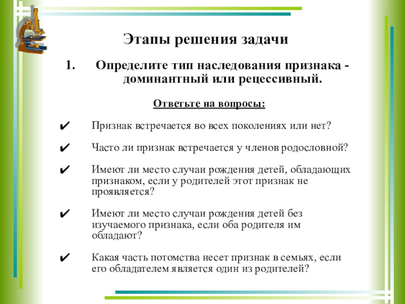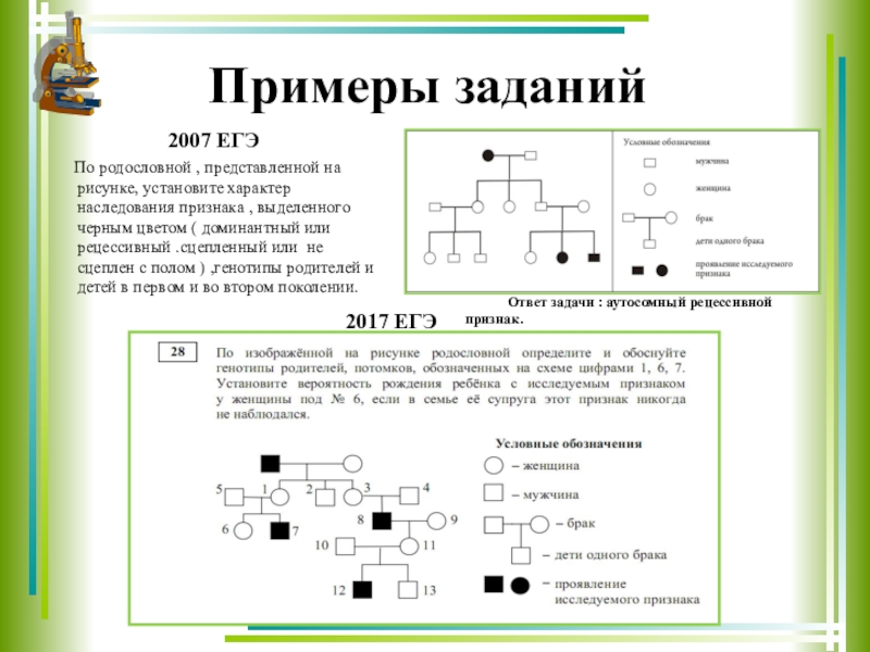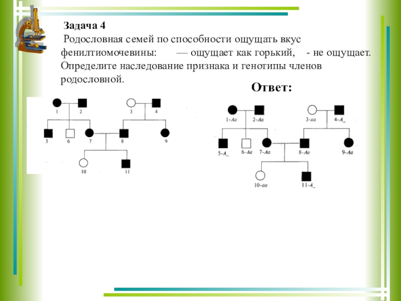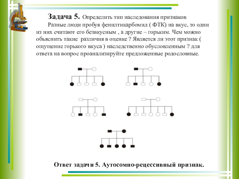 Ответ задачи 5. Аутосомно-рецессивный признак.