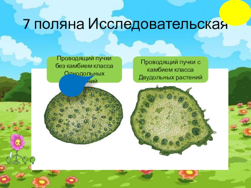 Одна семядоля, мочковатая корневая система параллельное жилкование, Проводящие пучки без камбия