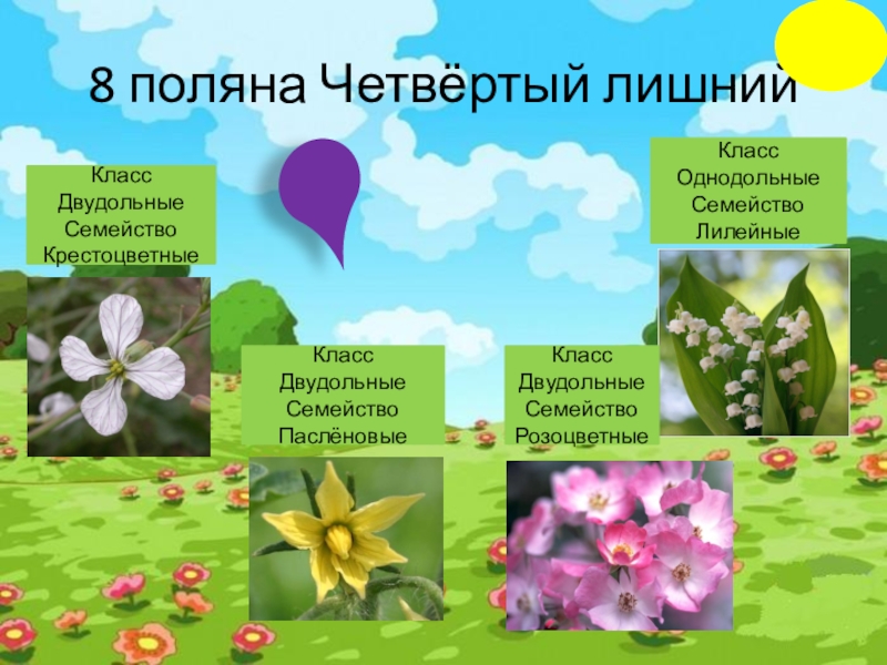 Розоцветные, крестоцветные, паслёновые, сложноцветные, бобовые, зонтичные