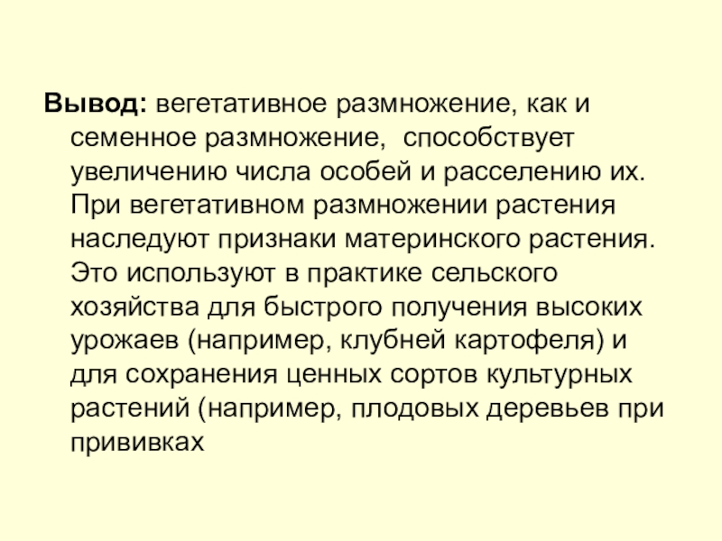 Вывод: вегетативное размножение, как и семенное размножение, способствует увеличению числа особей