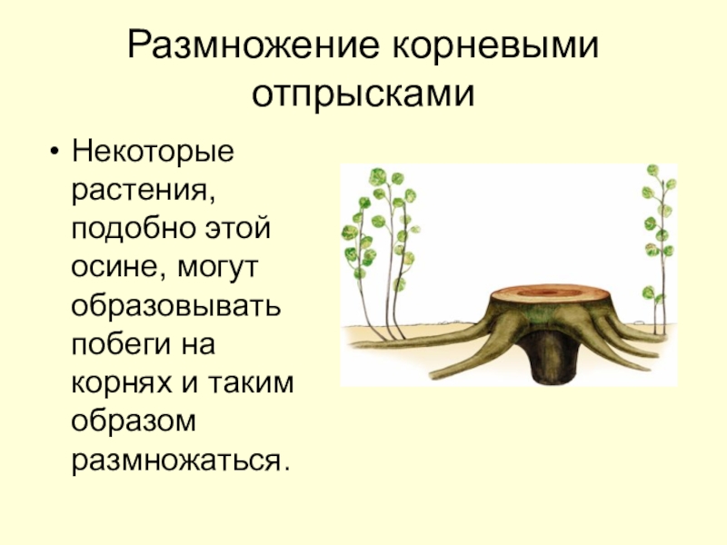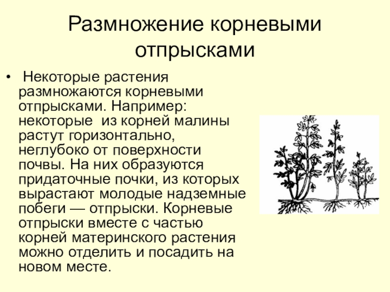Некоторые растения размножаются корневыми отпрысками. Например: некоторые из