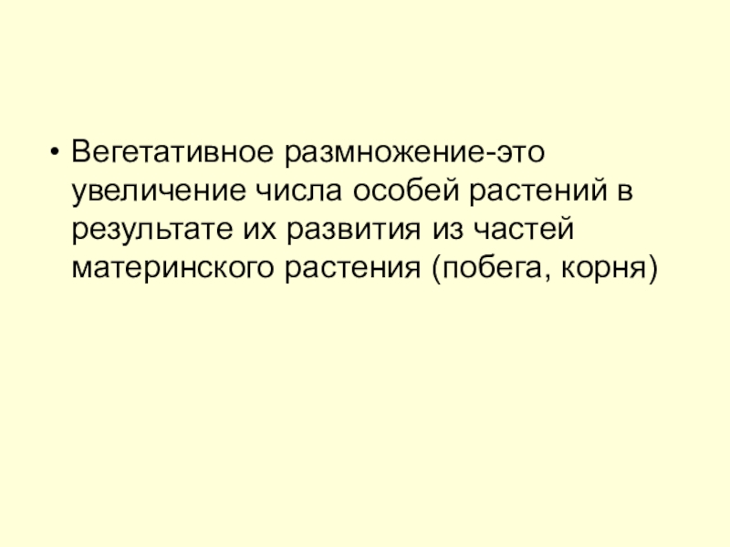 Слайд 2Вегетативное размножение-это увеличение числа особей растений в результате их развития из
