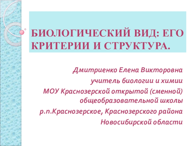 БИОЛОГИЧЕСКИЙ ВИД: ЕГО КРИТЕРИИ И СТРУКТУРА.