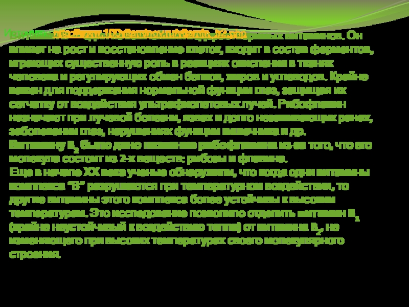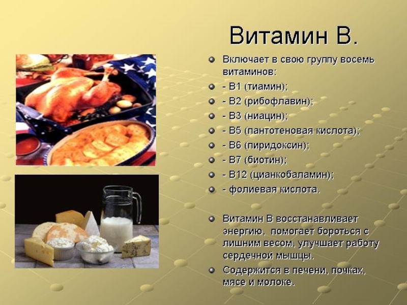 Слайд 5Витамин B — один из важнейших водорастворимых витаминов. Он влияет на