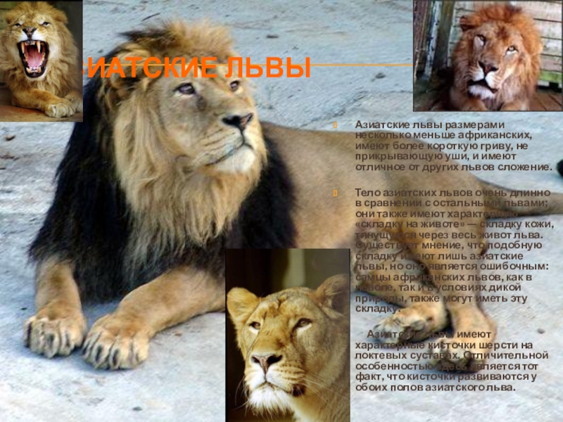 Слайд 13АЗИАТСКИЕ ЛЬВЫ
