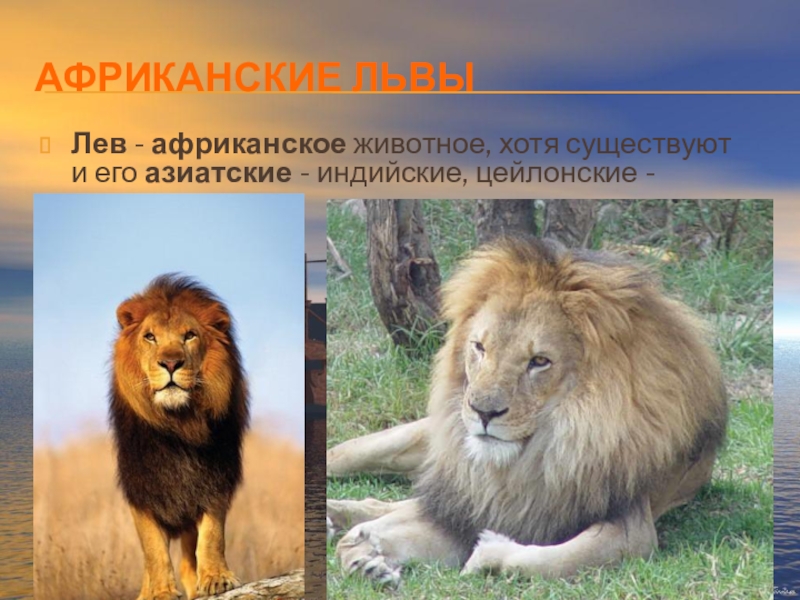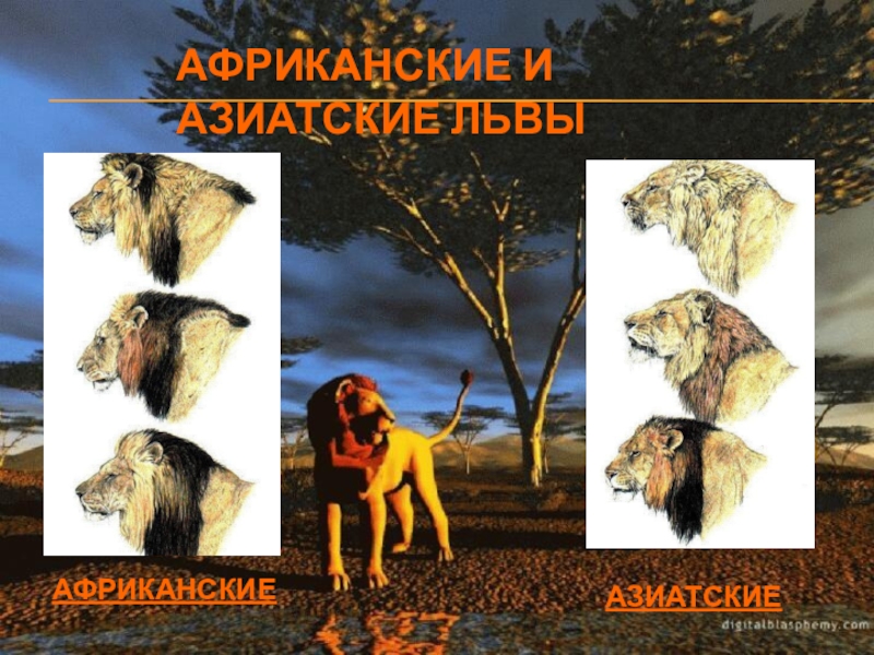 Слайд 16АФРИКАНСКИЕ И АЗИАТСКИЕ ЛЬВЫ