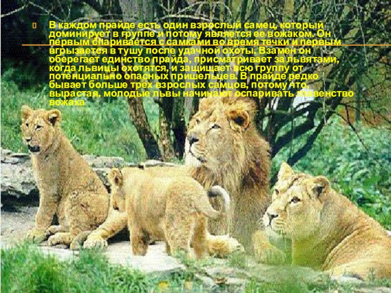 Слайд 8В каждом прайде есть один взрослый самец, который доминирует в группе