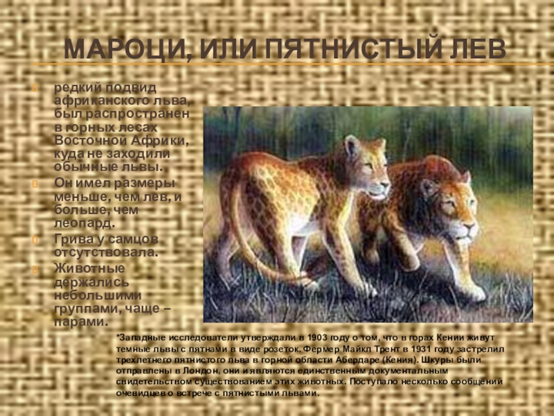 Слайд 18МАРОЦИ, ИЛИ ПЯТНИСТЫЙ ЛЕВ
