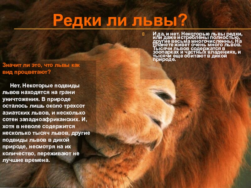 Слайд 17И да, и нет. Некоторые львы редки, или даже истреблены полностью,