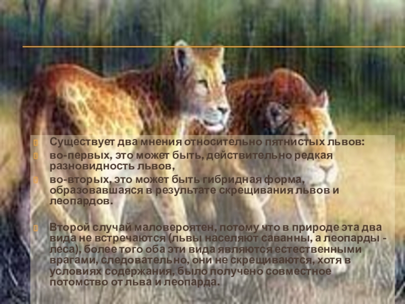 Слайд 19Существует два мнения относительно пятнистых львов: