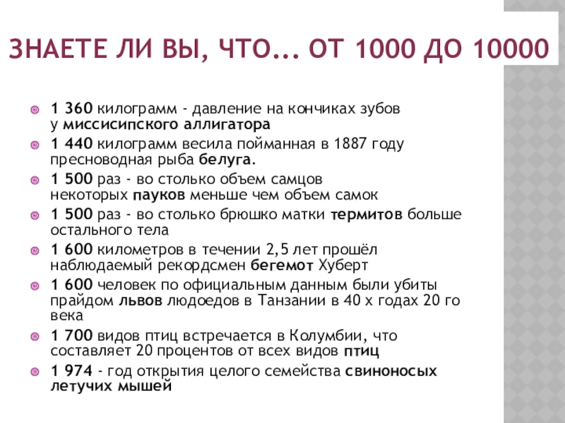 Слайд 42Знаете ли Вы, что... от 1000 до 10000