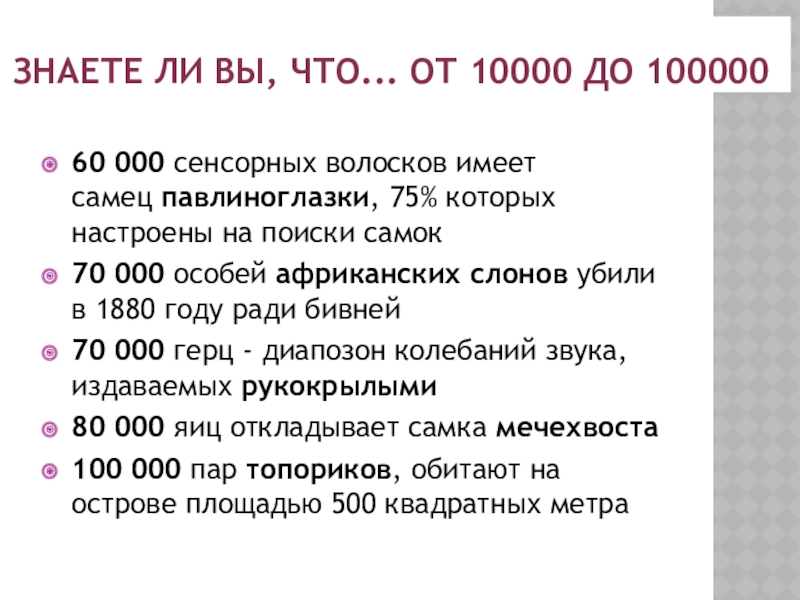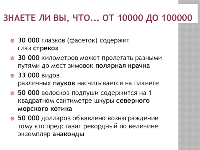 Слайд 47Знаете ли Вы, что... от 10000 до 100000