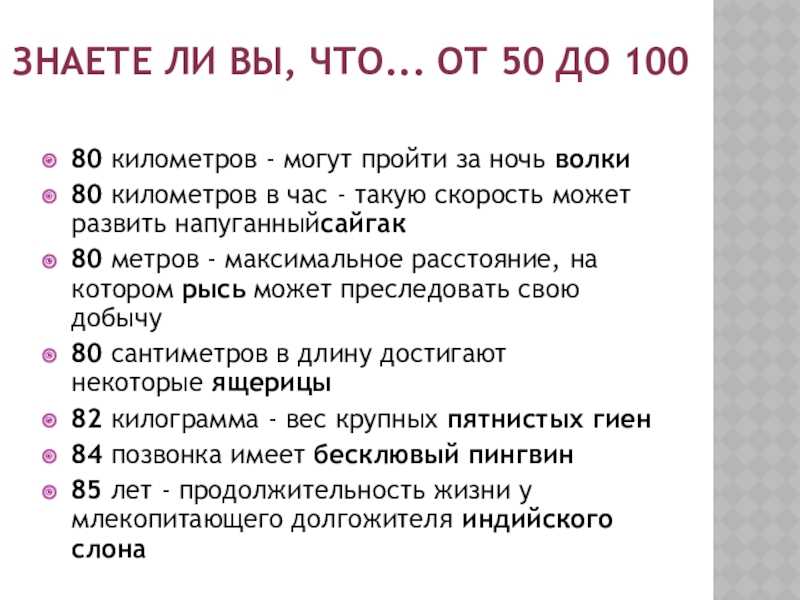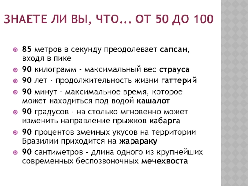 Слайд 8Знаете ли Вы, что... от 50 до 100